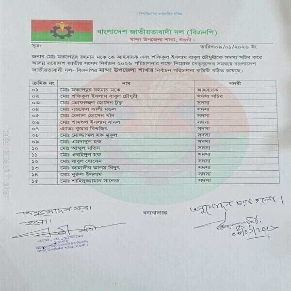 দলীয় সূত্র জানায়, নতুন এই কমিটি মান্দা উপজেলায় দলীয় কার্যক্রমকে আরও গতিশীল করার পাশাপাশি আসন্ন ত্রয়োদশ জাতীয় সংসদ নির্বাচনকে সামনে রেখে সাংগঠনিক প্রস্তুতি ও মাঠপর্যায়ের কার্যক্রম সমন্বয়ের দায়িত্ব পালন করবে।