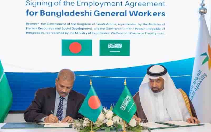 বাংলাদেশ ও সৌদি আরবের মধ্যে সাধারণ কর্মী নিয়োগ সংক্রান্ত একটি গুরুত্বপূর্ণ দ্বিপাক্ষিক চুক্তি সোমবার (৬ অক্টোবর) রিয়াদে স্বাক্ষরিত হয়েছে।